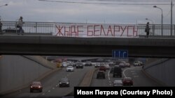 В Петербурге вывесили баннер "Жыве Беларусь" в поддержку жителей республики