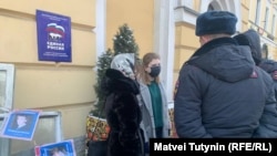 Полиция через три минуты после начала акции задержала Елену Скворцову и Екатерину Бушкову. На них составят протоколы по статье 20.2 Кодекса об административных правонарушениях - нарушение порядка организации публичного мероприятия. Окна полицейские заберут как предмет правонарушения.