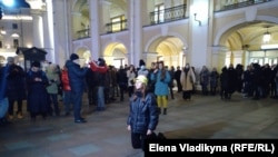 В Петербурге у станции метро "Гостиный двор" уже шестой день подряд идут антивоенные акции протеста. Полицейские требуют от людей разойтись. Одна девушка встала на колени на пустом пространстве между участниками акции, в руках у нее не было плакатов, она ничего не кричала. Ее тут же задержали.