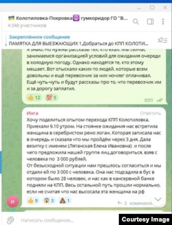 – Людей стали долго держать, приходилось оставаться на ночь – в жутких условиях под открытым небом, – рассказывает волонтер Арина (имя по ее просьбе изменено. – СР). – Воды и еды там купить негде, денег на хостел у многих тоже нет, только на улице ночевать. К тому же, Колотиловка – пеший переход, там в машине не заночуешь.