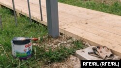 Муж Сергей с гордостью рассказывает, что на похороны Саши приехало много военных. "Всю площадку заполнили, – обводит он руками территорию. – Как положено, стреляли. Уйба к могиле не подошел – на обочине стоял. Это уже после мы сюда песок привезли, ступеньки сделали, навес поставили".