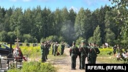 Корреспондент "Фонтанки" отмечает, что видел среди пришедших на кладбище охранника Евгения Пригожина Сергея Плащенко.
